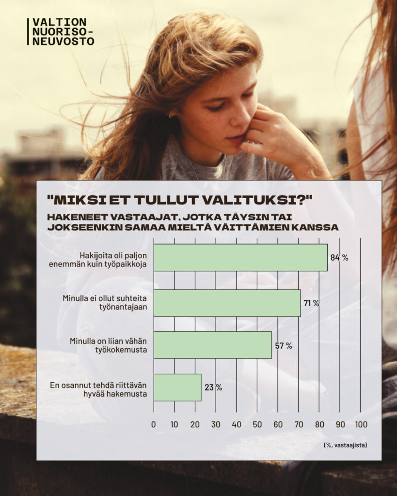 “Kaikilla nuorilla tulisi olla mahdollisuus kesätöihin ja työelämän oppimiseen. Kesätyöt vahvistavat nuorten osallisuutta, itseluottamusta ja tulevaisuususkoa. Erityisesti muunkieliset nuoret ja ne, joilla ei ole aiempaa työkokemusta, kohtaavat esteitä työllistymisessä. On tärkeää, että kunnat lisäisivät nuorten kesätyömahdollisuuksia huomioiden nämä erityisryhmät sekä edistäisivät työllistymismahdollisuuksia yhdessä työllisyysalueiden ja yritysten kanssa”, painottaa valtion nuorisoneuvoston puheenjohtaja Ida Leino.