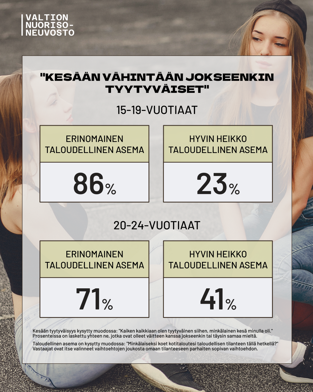 ”Lasten ja nuorten kesänviettoa on tutkittu aiemmin vähän, vaikka suurin osa kouluista ja oppilaitoksista sekä nuorisotiloista sulkee ovensa yli kahdeksi kuukaudeksi. Julkisten instituutioiden vetäytyessä nuorten kesä rakentuu muita vuodenaikoja vahvemmin perhe- ja kaverisuhteiden varassa. Niinpä ei ole yllättävää, että esimerkiksi taloudelliset eriarvoisuudet näkyvät tuloksissamme”, toteaa Nuorisotutkimusseuran erikoistutkija Antti Kivijärvi.