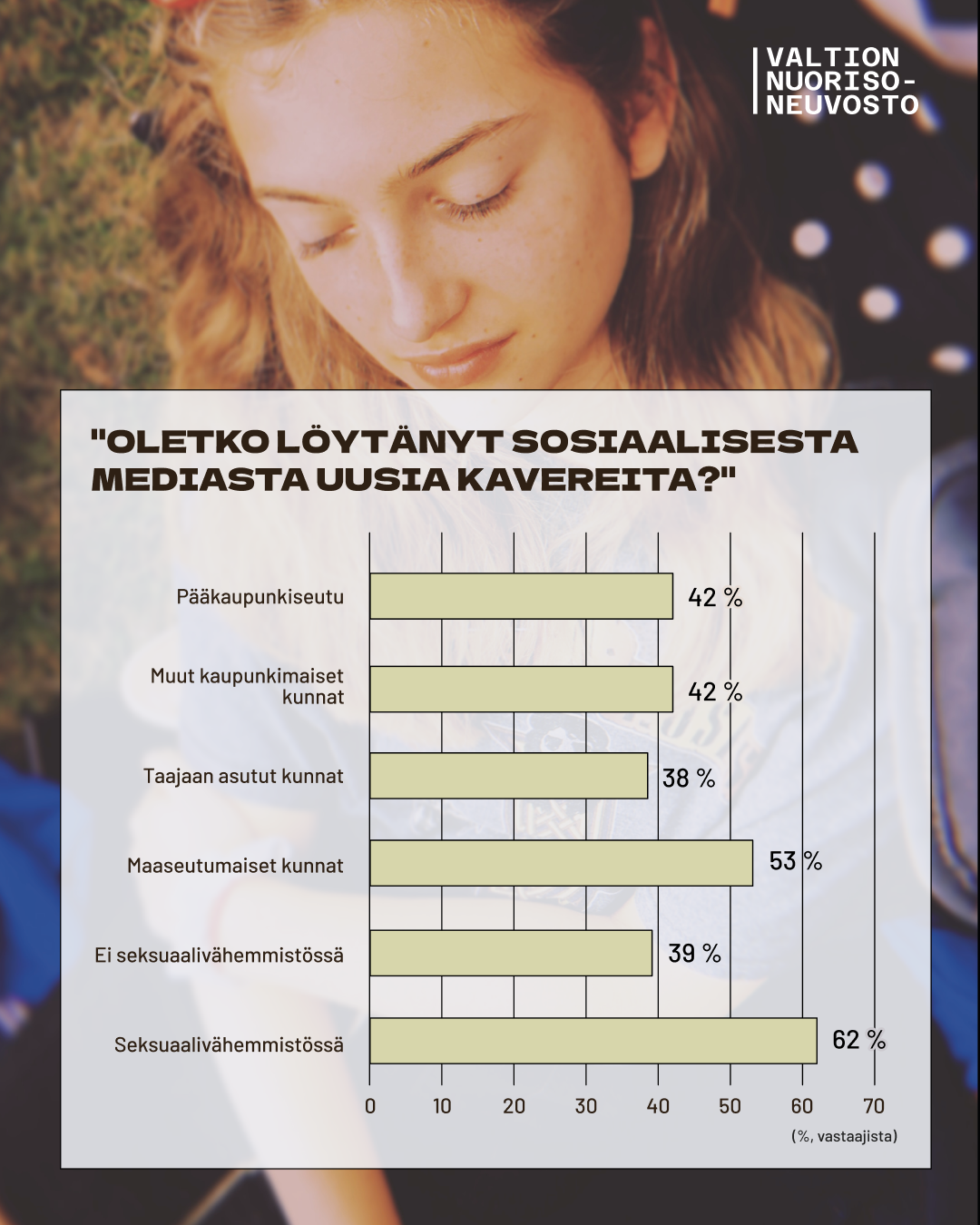 Kolmasosa nuorista koki, että sosiaalinen media oli vaikuttanut heidän elämäänsä myönteisesti, mikä on kaksi kertaa suurempi osuus kuin vaikutuksen kielteiseksi arvioineiden määrä. Yleisimmin nuoret kokivat sosiaalisen median vaikutuksen elämäänsä neutraalina tai vaikeasti arvioitavana. Monilla nuorilla onkin sekä myönteisisiä että kielteisiä somekokemuksia.